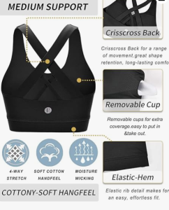 Bra for Women, Criss-Cross Back Padded Strappy Sports Bras Medium Support Yoga Bra with Removable Cups   Product details Fabric […]