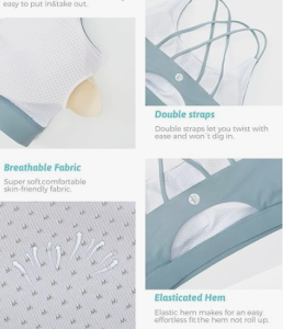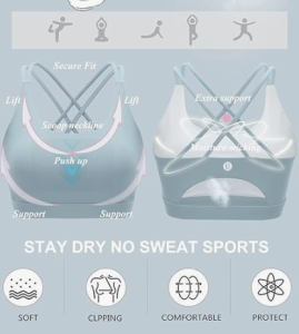 √YOUR SECURE FIT – Strappy design meets sporty style. Super soft scoop neckline with light, removable pads. Open cutout back styling sports bras for women medium support, widen band underneath the breast ensures a tight secure fit. Removable cups for extra coverage. The removable vertical cotton bra pads are easy to clean.The padded sports bra which always retains its shape and prevent bra bulges, caresses your figure to adjust to your curves.